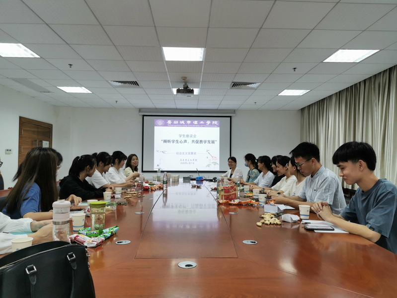 本网讯(记者 黄忠瑶)“社会主义发展史”这一门新课的学习已经进入了尾声,为进一步了解学生们的学习情况和对这门课程的建议,马克思主义学院于2022年6月9日星期四晚上在行政楼510举行“倾听学生心声,共促教学发展”学生茶话会,人文素质教研室全体教师和十三名学生代表参加。