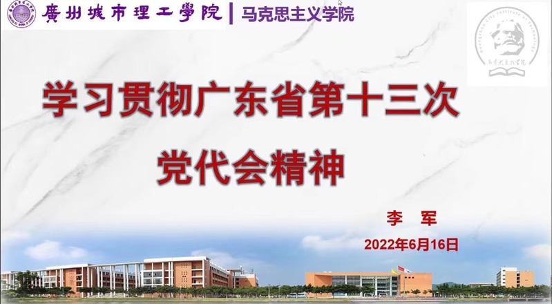 本网讯(记者 陈姣娣)6月16日晚,我校马克思主义学院在腾讯会议召开学习贯彻广东省第十三届党代会精神专题报告会。马克思主义学院党总支书记李军、院长吕志,及全院教职员工参加本次研讨学习。会议由李军主持。