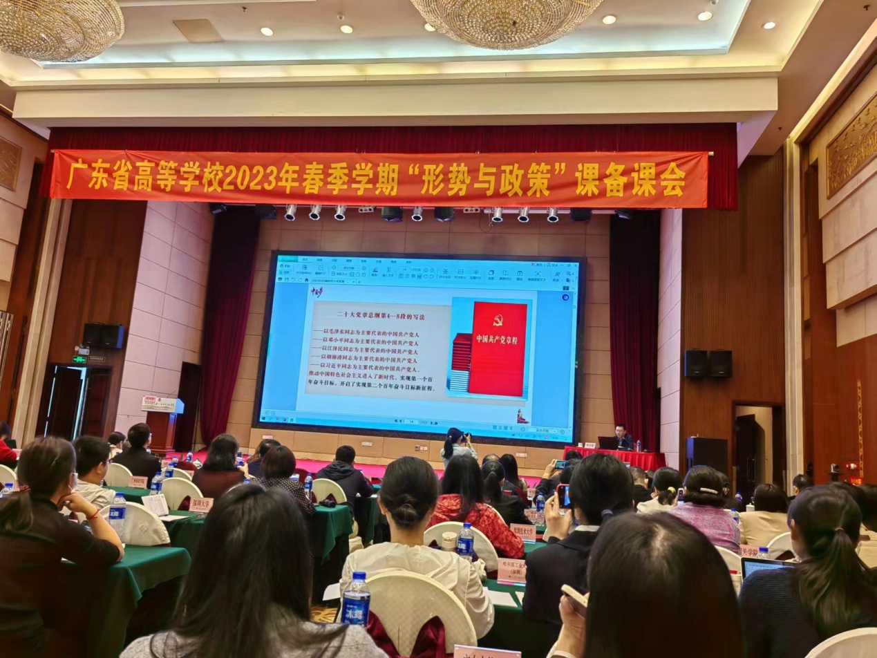 本网讯(记者 蒋一娴)3月26号,省高等学校2023年春季学期“形势与政策”课备课会暨全国高校思政课“手拉手”集体备课中心2023年备课会在广州三寓宾馆会议厅举行,广东省160所高校,308名教师参加,我校马克思主义学院派两位教研室副主任王文彦、蒋一娴参加备课会。