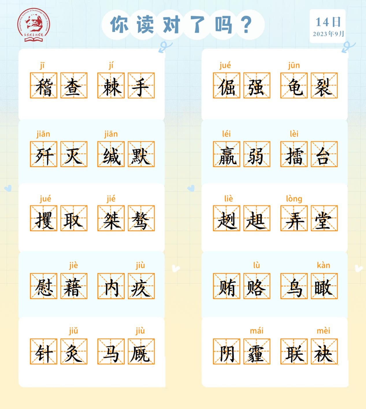 2023911日至17普通话推普周已经到来,马克思主义学院以“书同文 语同音 人同心,推广普通话,奋进新征程”为活动主题,来分享学生眼中的这些读音容易混淆的字词你读对了吗?
