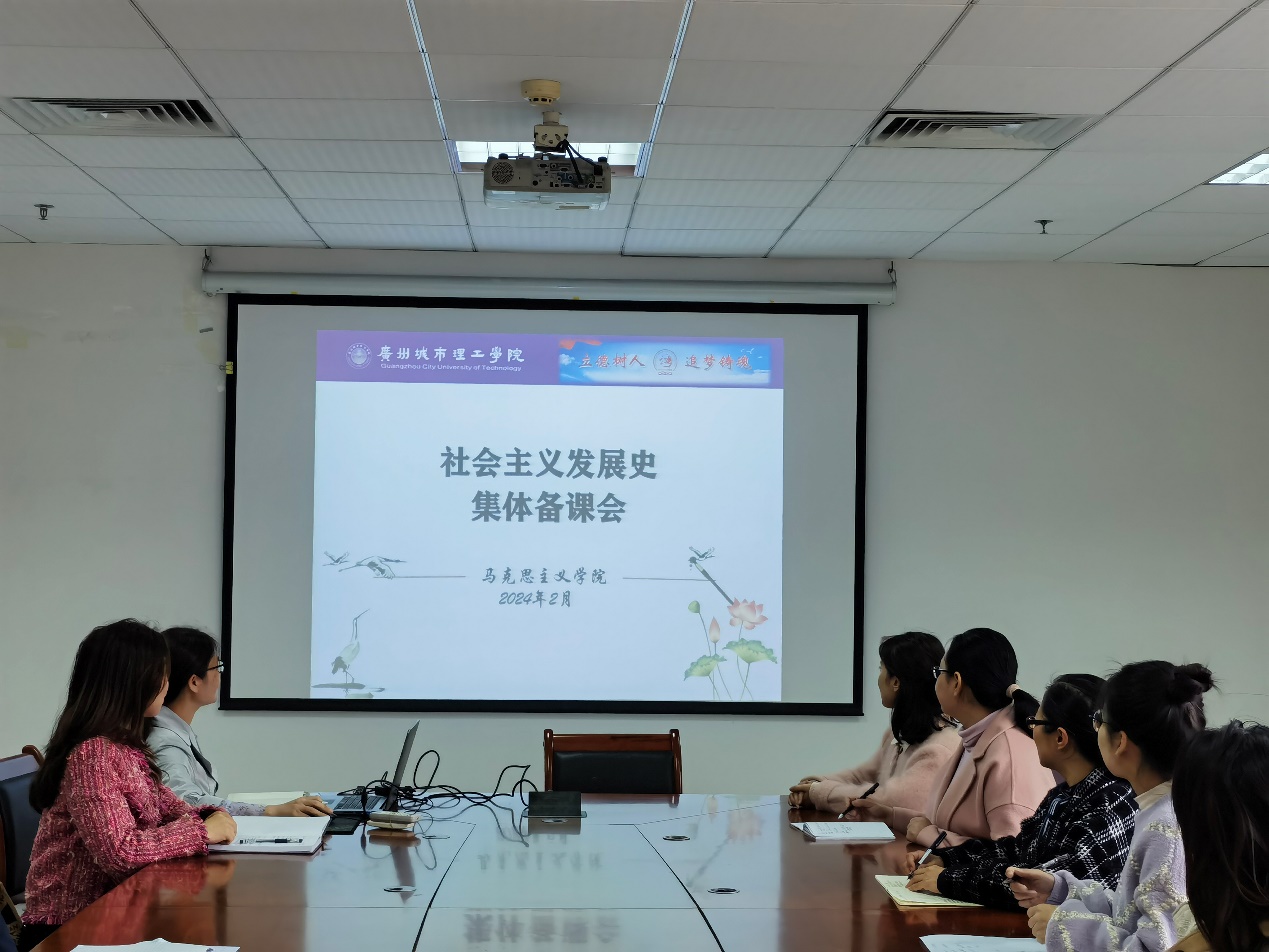 本网讯(记者 黄忠瑶)为全面提升社会主义发展史育人实效,做好新学期授课工作,在学院的统一部署下,2月23日,马克思主义学院《社会主义发展史教学团队在行政楼510召开了2023-2024学年第二学期第一次集体备课会。备课会由社会主义发展史课程负责人黄忠瑶老师主持,教学组所有老师参加。此次备课以教学大纲为核心,围绕课程目标、教学要求、教学安排、考核评价机制等方面进行探讨