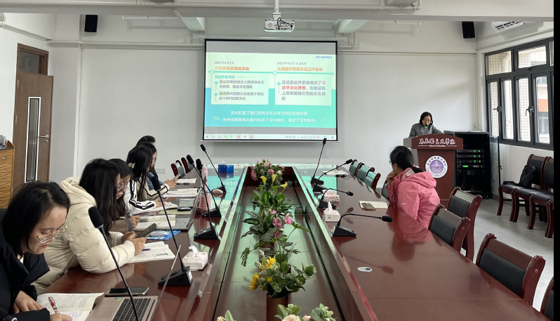 备课会上,邹春梅、李智、张继艳、罗文嘉、张小容老师先后就《加快建设社会主义文化强国》《中国经济行稳致远》《以人口高质量发展支撑中国式现代化》《厚植绿色底色 建设美丽中国》《从教育大国迈向教育强国》分享了自己负责专题的教学设计,梳理了备课思路。老师们围绕以上专题展开了热烈的讨论,积极分享了自己的教学经验和方法,探讨了如何将案例分析、专题讨论等多样化的教学手段与课堂有机结合。会议期间,教师们不仅交流了讲授专题的重点、难点,还就如何提升学生的学习兴趣和参与度、如何确保政治立场坚定和理论表述准确等问题进行了深入的探讨。会议接近尾声时,罗文嘉作为教师代表发言,她说:“通过此次备课会,大家不仅加深了对形势与政策课程的理解,拓宽了自己的视野,学到了有效的教学方法和技巧,还收获了许多宝贵的教学资源和灵感。”她同时提到,备课会为教师们提供了一个宝贵的交流平台,有助于形势与政策课程的高质量发展。