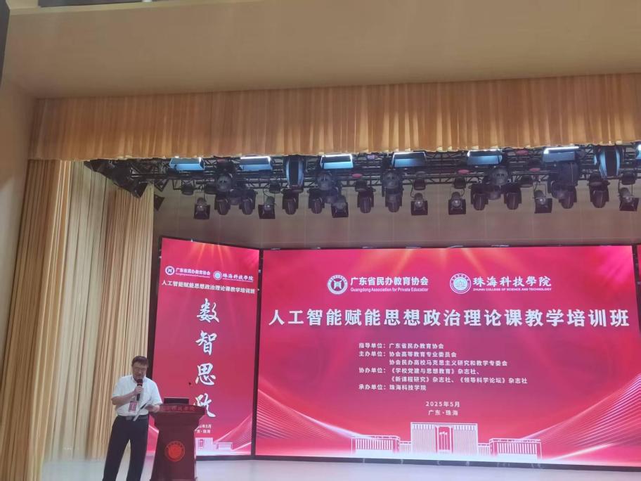 本网讯(记者 王文彦)524日,由广东省民办教育协会指导,协会高等教育专业委员会和协会民办高校马克思主义研究和教学专委会主办、珠海科技学院承办的人工智能赋能思想政治理论课教学培训班在珠海科技学院开班。本次培训以人工智能赋能思想政治理论课教学的实践路径为主题,汇聚了来自广东省内外50多所高校,260余名思政课教师参加,我院协会民办高校马克思主义研究和教学专委会秘书长吕志院长一行参加了此次培训。