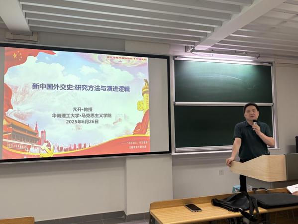 亢升教授则从课堂实效性角度建议,构建“问题链式”互动体系,通过设置阶梯式追问引导学生深度思考,同时借助在线互动平台等数字化工具拓展教学场景,增强课堂互动的立体感和时效性。为助力教师提升备课质量与资源整合能力,亢升教授以“新中国外交史:研究方法与演进逻辑”为主题开展学术讲座,以现代史外交研究为切入点,系统阐释了该领域的研究范式与学术路径,梳理了新中国外交典型案例,深入剖析了外交决策的历史逻辑与现实影响。