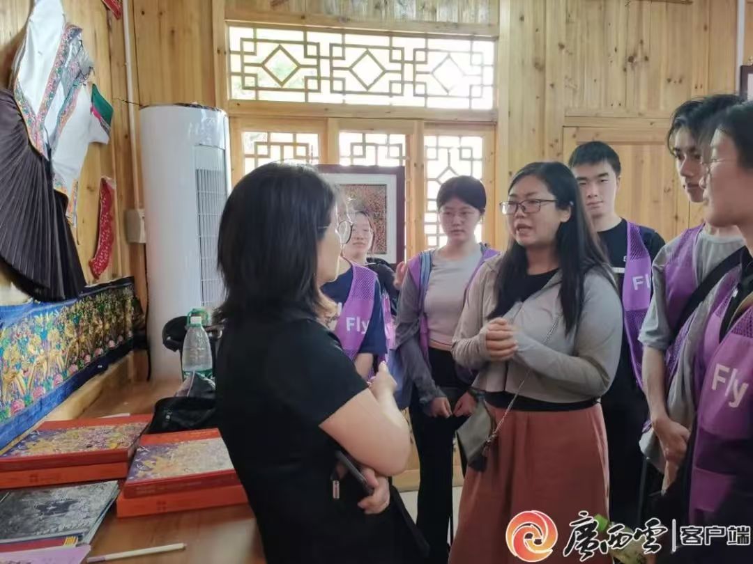 蒋一娴带领学生在三江侗乡与非遗传承人陈玉秋老师交流调研(霍子乐 摄)