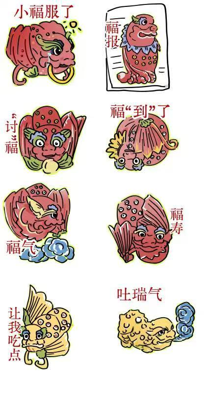 确定了将“小福”作为三华村的核心IP形象后,Young实践团文创组的同学从灰塑作品中提取灵感,设计了“小福服了”“福报”“讨福”“福气”“福寿”“福到了”等众多衍生形象,整体采用圆润的线条和浓烈的色彩,塑造出可爱、呆萌且富有童趣的形象,传递惊喜、娇羞、兴奋、平和等多样情绪,并将IP形象广泛应用于扇子、手帐本、文化衫、包装袋、抱枕、手机壳、帆布袋等多种日常用品上。张颖同学谈到,“各具特色的的IP形象,可制作成贴纸、冰箱贴等,在社交聊天软件中可拉近人与人之间的距离,也可强化对三华村IP的情感联结;而文创产品则是实际功用和文化传播的双重载体,能让使用者在日常生活中随时随地感受到三华村的独特魅力,从而提升品牌影响力和美誉度。”