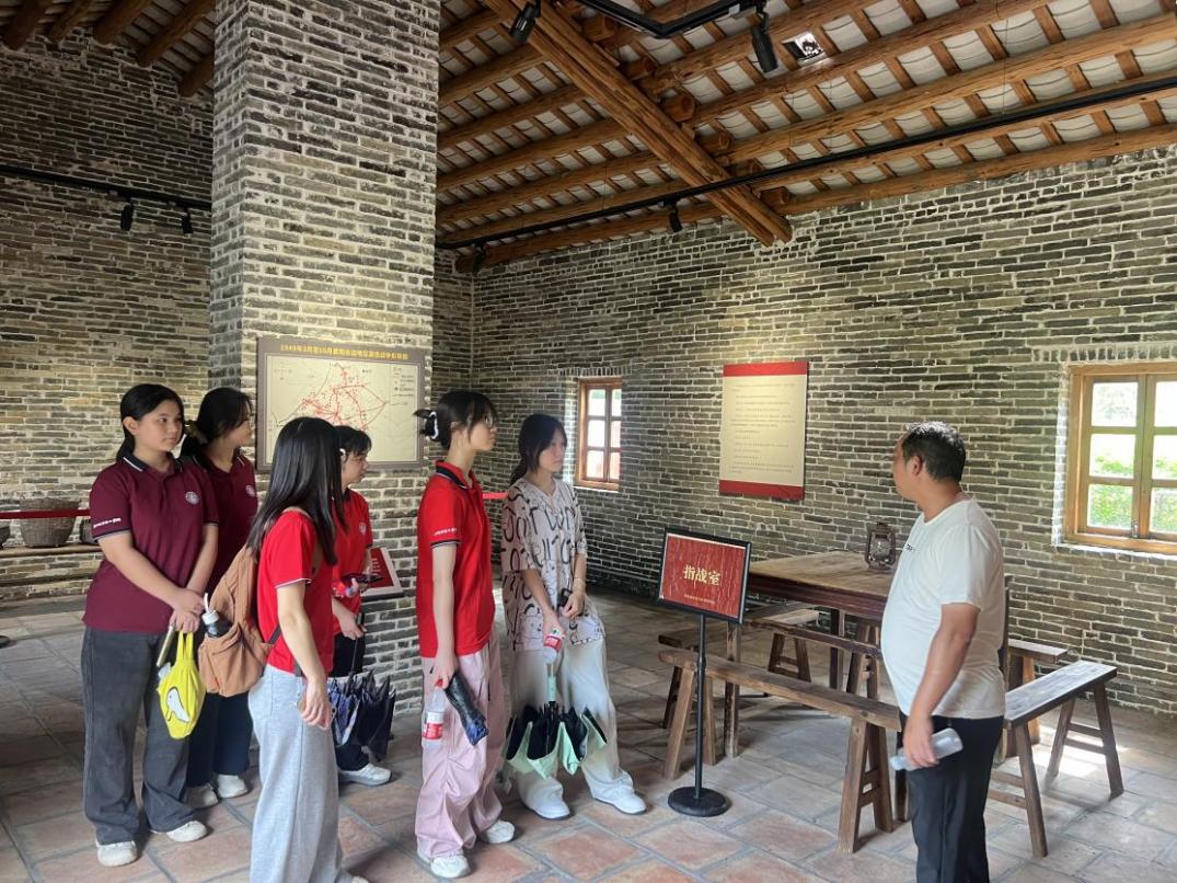 7月3日,团队师生从表竹村恩阳台独立大队活动旧址——解放战争时期的重要革命据点开启红色探访之旅。团队成员了解到,在特殊历史时期,这里成为恩阳台独立大队的活动根据地,即当年的表竹小学。那些在教室研讨作战方案、在球场练兵休整的场景,虽已时隔几十载,却仍能透过复原的警备室、陈列的旧物与老照片,让师生们触摸到历史的温度。步入恩阳台独立大队事迹展览馆,一幅幅图片、一段段文字生动还原了经典战役,团队成员围站在历经岁月的实物展品旁感受革命先辈的坚韧与热血。