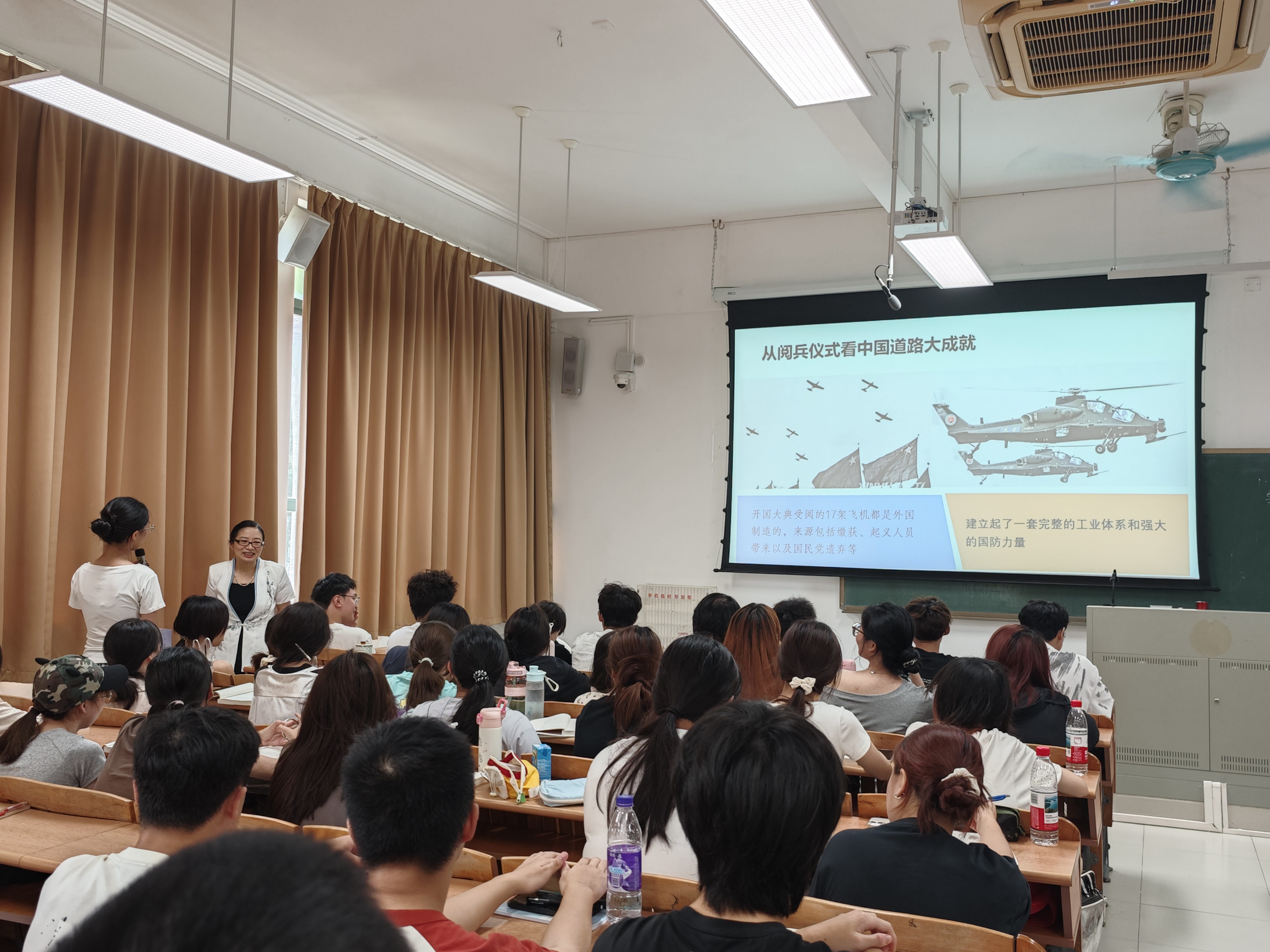 课程伊始,邹春梅老师以93日纪念中国人民抗日战争暨世界反法西斯战争胜利 80 周年大会的阅兵视频导入课堂。视频中,整齐的方阵、先进的装备和民众的欢呼,让同学们如临现场,深切感受到中国特色社会主义道路的辉煌成就。趁着同学们沉浸于视频的震撼,邹老师顺势引导大家思考成就背后的原因,自然引出“中国化时代化的马克思主义行”这一要点,点明习近平新时代中国特色社会主义思想作为马克思主义中国化时代化的最新理论成果,迅速抓住了同学们的注意力,为后续课程开展奠定了良好基础。